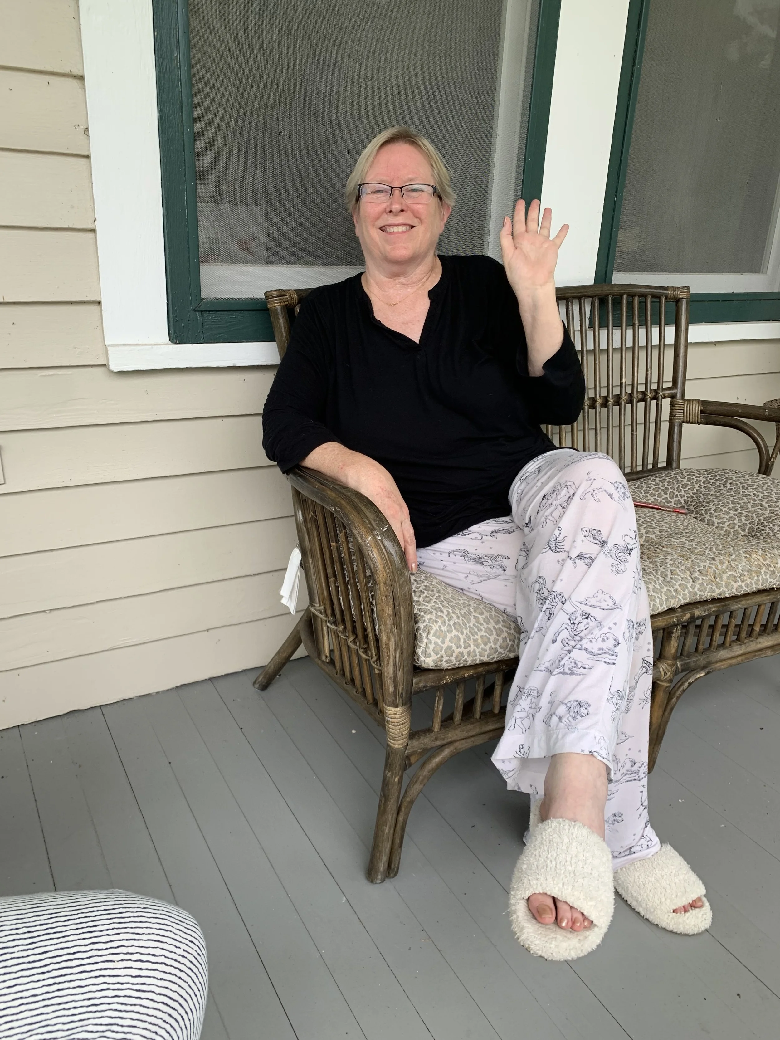 I decided to set off for New Orleans a day early so that we could stay with Peggy Blades in Covington, for a night and regroup before heading across Lake Pontchatrain to our VRBO rental. (Which, I have discovered, doesn’t have an actual kitchen. They have provided a small refrigerator, a microwave and a coffee maker to make up for it.)